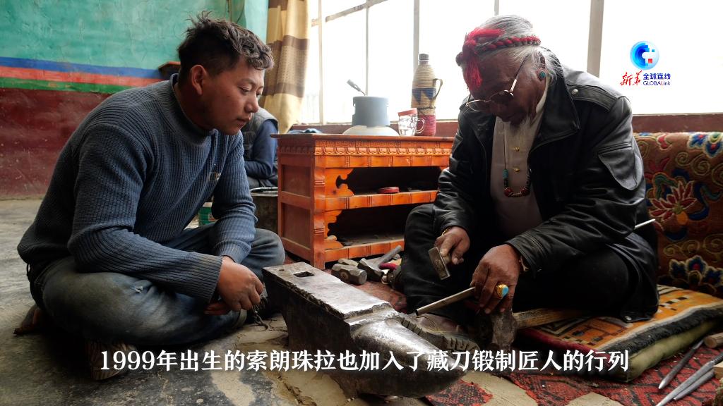 藏刀鍛制技藝傳承人次旦旺加的作坊里,兩個兒子尼瑪旺拉和次旦扎西協助次旦旺加認真完成著每一個鍛造環節。次旦旺加的孫子,1999年出生的索朗珠拉也加入了藏刀鍛制匠人的行列,成為第八代傳承人。
