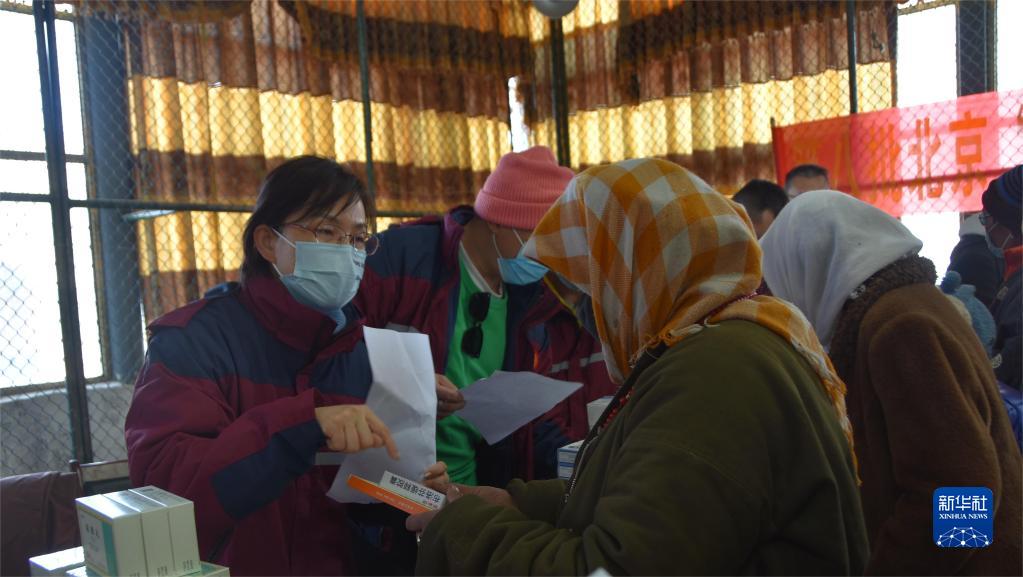 午后時(shí)分,天空仍然飄著小雪,來自北京援藏醫(yī)療隊(duì)的15名醫(yī)生剛下車,便馬不停蹄地開始工作。據(jù)援藏醫(yī)療隊(duì)醫(yī)務(wù)處處長(zhǎng)趙萬全介紹,本次義診前,醫(yī)療隊(duì)已提前了解當(dāng)?shù)厝罕姷亩喟l(fā)病類型,攜帶了充足的降血壓、常用抗生素等藥品。與此同時(shí),他們還為納木湖鄉(xiāng)群眾開展“分級(jí)診療”,“把脈”群眾的健康狀況,對(duì)群眾所患病癥的進(jìn)一步醫(yī)治給出相應(yīng)建議。