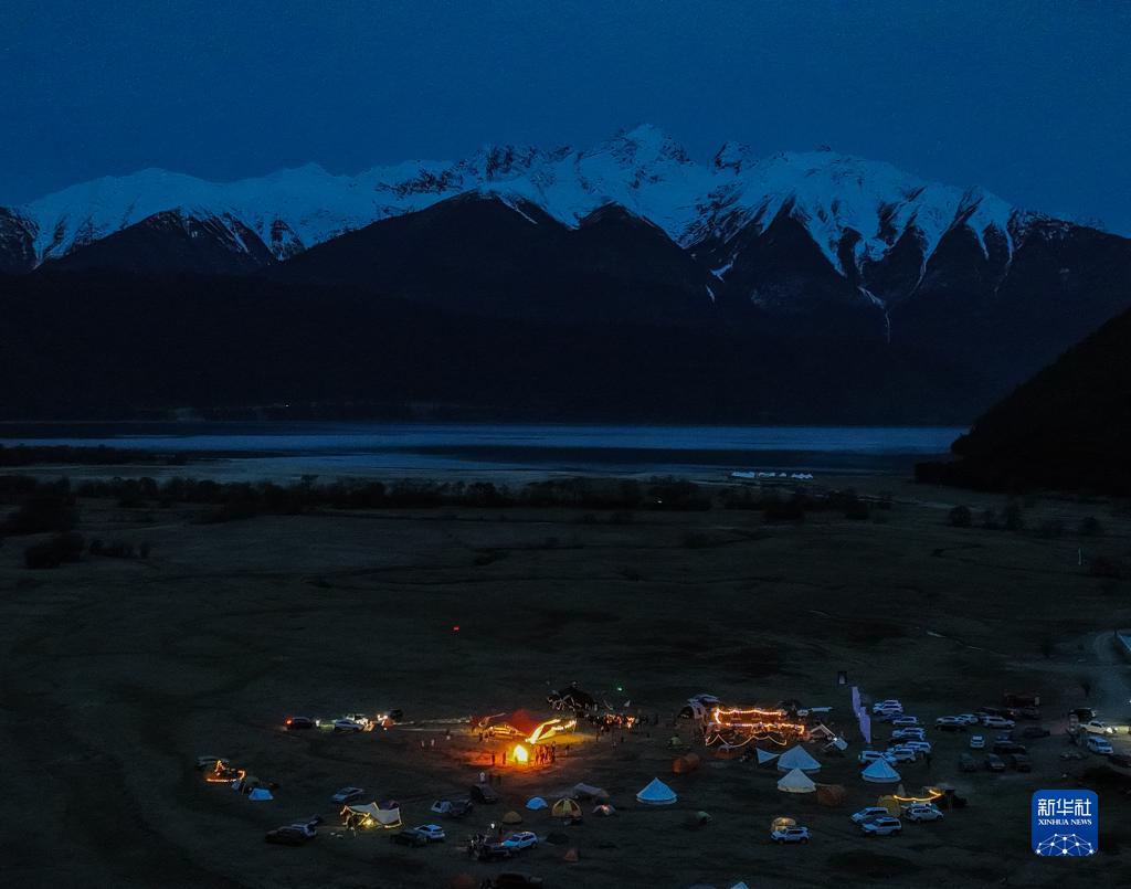 當日,西藏舉辦“巴松錯漂流露營大會”。春日里的巴松錯湖水清澈,雪山環繞,景色宜人,吸引了來自全國各地的游客到此體驗露營生活。