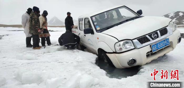 圖為巡護(hù)車輛陷車。謝昆軍供圖