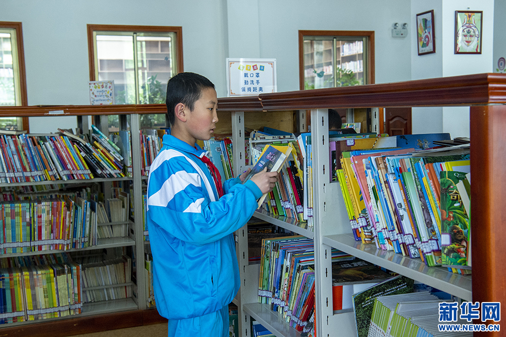 4月23日,一對母子在書店里閱讀繪本。新華網 旦增努布 攝