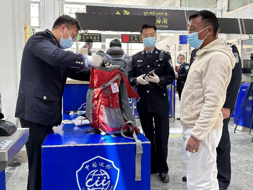 5月1日,移民警察正在檢查入境旅客行李物品。新華社發 格熱 攝