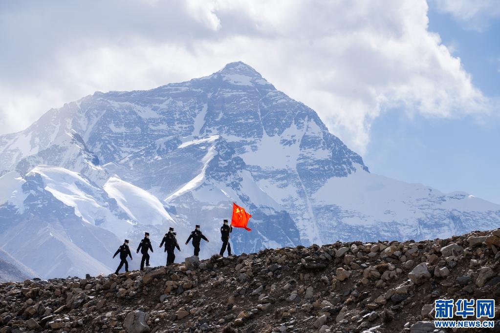 珠峰邊境派出所民警在珠峰核心區巡邏。