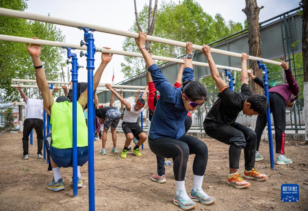 在西藏拉薩市當雄縣羊八井鎮,玉珍拉姆(中)在訓練休息時和隊友聊天(5月2日攝)。新華社記者 孫非 攝
