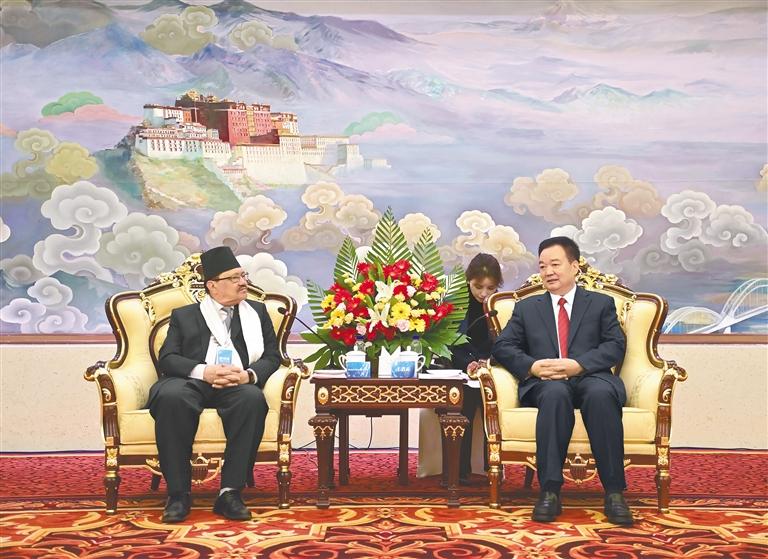 尼泊爾駐華大使比什努·普卡爾·施雷斯塔代表參訪團感謝西藏的熱情接待,祝賀西藏在經(jīng)濟社會發(fā)展方面取得的成就。