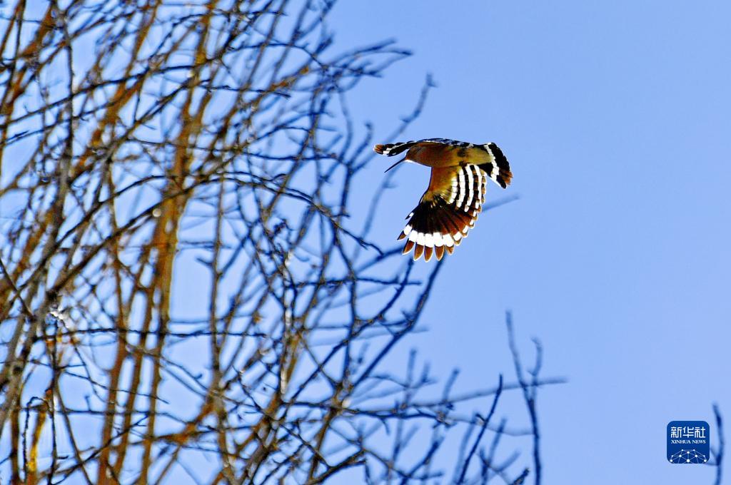 戴勝在拉薩市城關區蔡公堂街道次角林村上空飛過(5月14日攝)。新華社記者 張汝鋒 攝