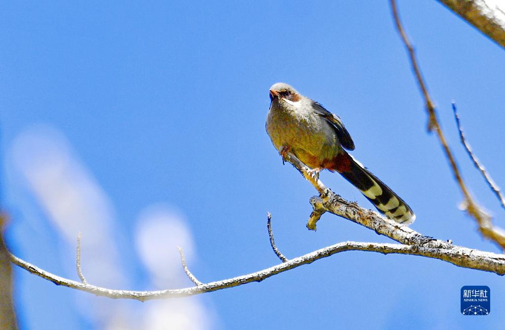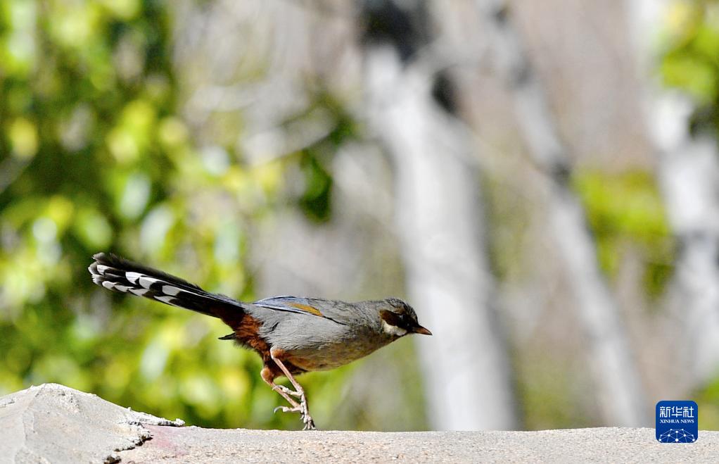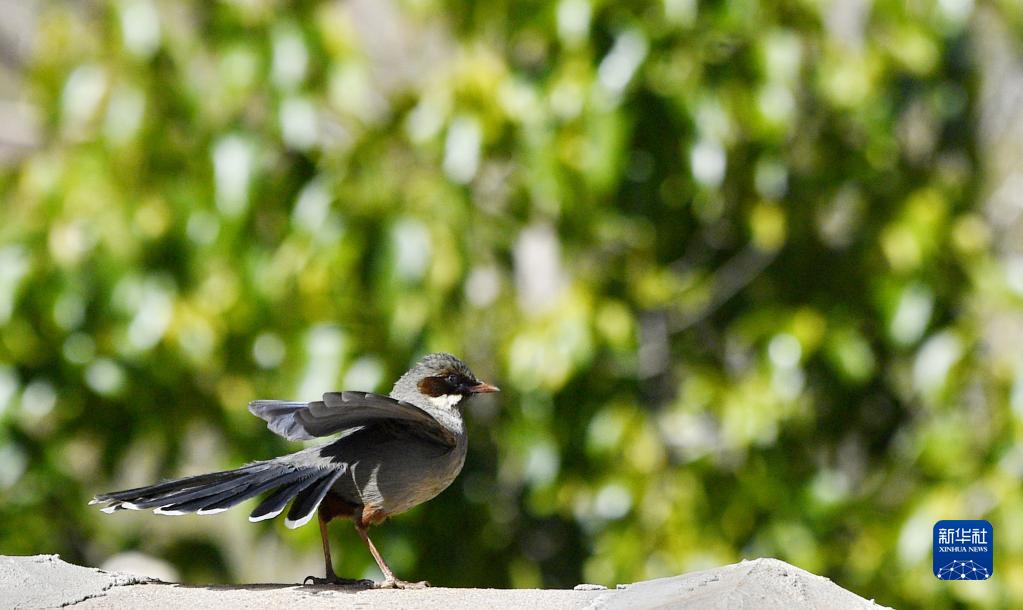 這是在拉薩市城關區蔡公堂街道次角林村拍攝的灰腹噪鹛(5月14日攝)。新華社記者 張汝鋒 攝