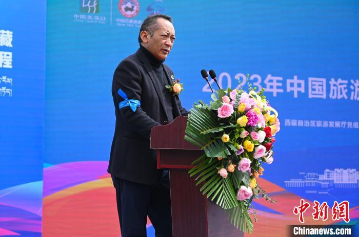 圖為西藏自治區旅游發展廳黨組成員、副廳長頓珠致辭。趙朗 攝