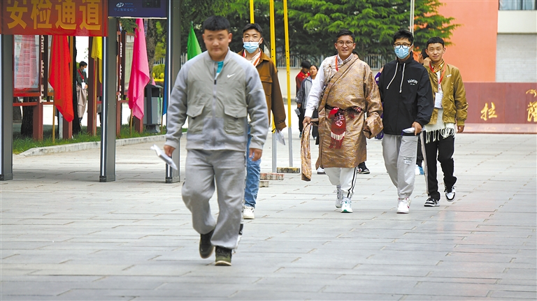圖為考生們走出拉薩中學考點。記者 鄭璐 袁海霞 實習生 巴片 攝