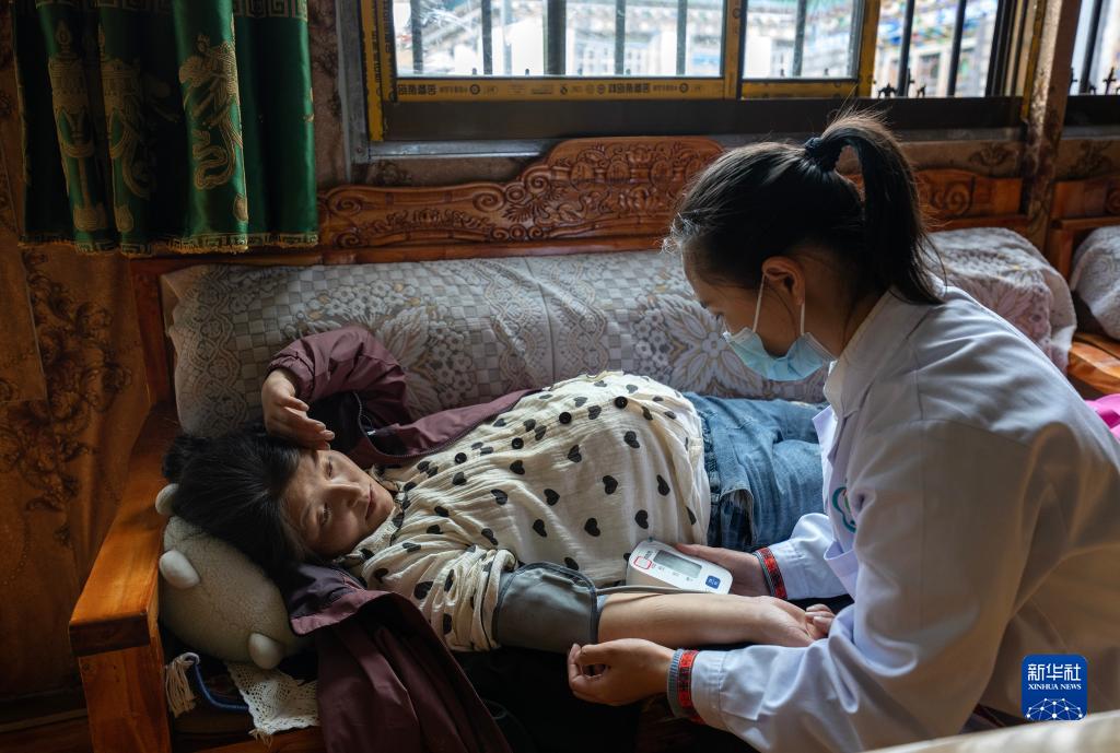 6月12日,王旭彤醫生在給珠杰檢查身體。新華社記者 晉美多吉 攝