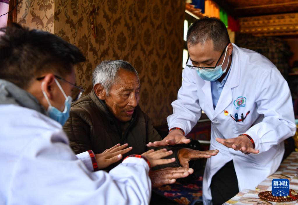 6月12日,王振疆(右二)在查看次仁旺姆的手指關節。新華社記者 費茂華 攝