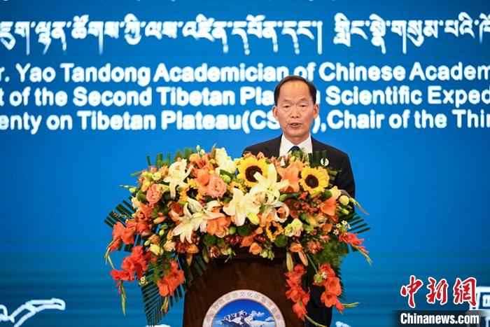 6月17日,中國科學院院士、中國科學院青藏高原研究所研究員、博士生導師姚檀棟在第五屆中國西藏旅游文化國際博覽會主旨論壇上對第二次青藏科考的最新成果進行了演講分享。他表示,考察實證漢藏同源,并將青藏高原人類活動歷史推至20萬年前。 中新社記者 貢嘎來松 攝