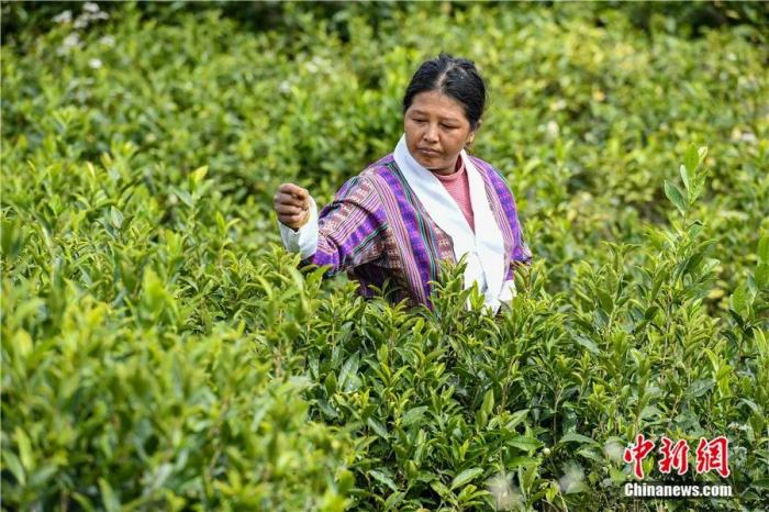 墨脫縣德興鄉易貢白村門巴族婦女采摘茶葉。貢嘎來松 攝