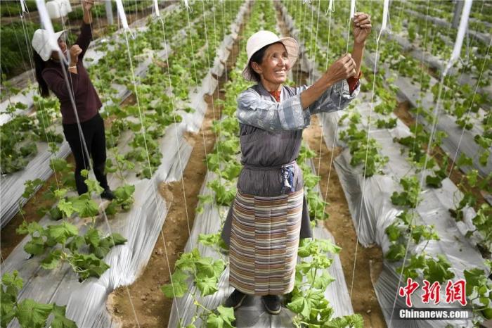 西藏山南扎囊縣綠之源智慧農業項目的工人正在勞作。楊華峰 攝