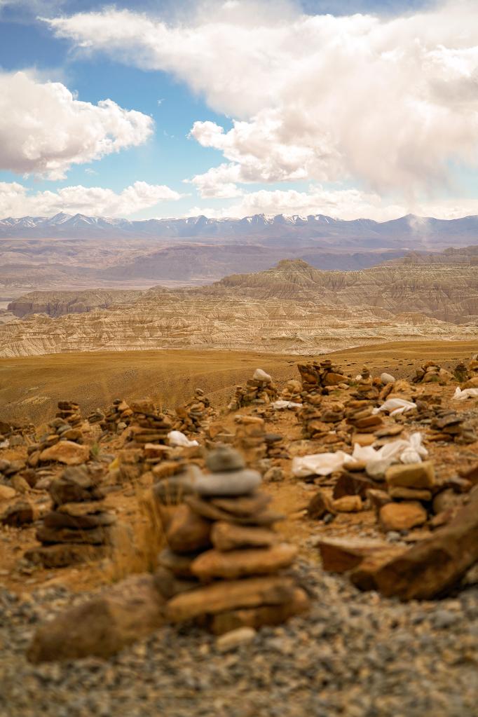 札達土林觀景臺前,許多的瑪尼石堆。(5月25日攝)