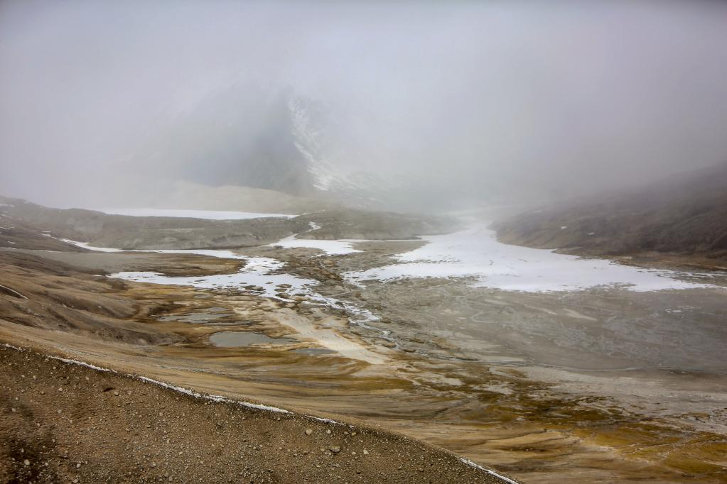 如果說札達土林和古格王國遺址給人的印象可以用宏偉壯觀來形容的話,那么雅魯藏布江發源地——杰瑪央宗冰川給人帶來的則是蕭瑟與遼闊的景象。我們趕到杰瑪央宗冰川的時候風雪交加。凜冽的寒風呼呼地刮在臉上像刀割一樣,風吹得人幾乎睜不開眼睛。作為本次報道的視頻記者之一,我當時最擔心的是機器拿不穩,拍攝畫面出現抖動的情況,所以拍攝全程我都把手中的相機攥得很緊。