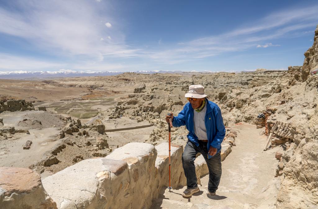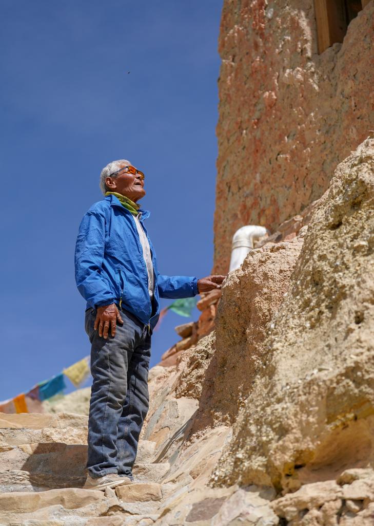 皮央和東嘎石窟遺址位于西藏自治區阿里地區札達縣境內的皮央村、東嘎村,由皮央石窟群和東嘎扎西曲林寺遺址組成。由于兩村距離很近,遺址規模巨大,故命名為皮央和東嘎石窟遺址。仁增旺扎是一位75歲的老人,他從2002年開始被聘為當地的文物保護管理員,從那時起就一直守護著皮央和東嘎石窟遺址,至今已經有20多年。