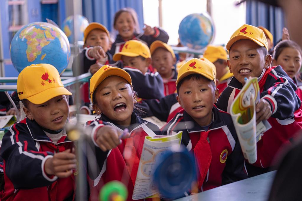 6月5日,扎西宗鄉完全小學的學生在上科學課。