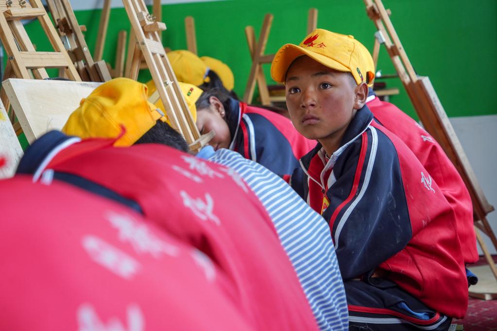 扎西宗鄉完全小學的學生在上美術課(6月5日攝)。