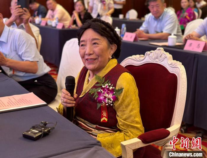 6月26日,紀(jì)錄片《唱支山歌給黨聽(tīng)——才旦卓瑪藝術(shù)人生》在北京開(kāi)機(jī),86歲的才旦卓瑪來(lái)到開(kāi)機(jī)儀式現(xiàn)場(chǎng),向各方對(duì)西藏文化事業(yè)的關(guān)心表示感謝。中新社記者 李晗雪 攝
