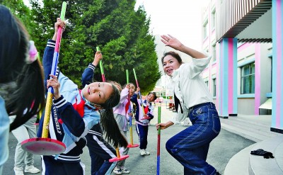 山南市第三小學的援藏教師甘夭娥帶領學生練習藏族傳統舞蹈“打阿嘎”。作為教育大省,湖南通過實施“山南湖南學校聯盟”工程,采取“一所學校包一個學科”的形式,把優質教育資源下沉到縣區和鄉村學校。攝影:辜鵬博(湖南日報攝影記者)
