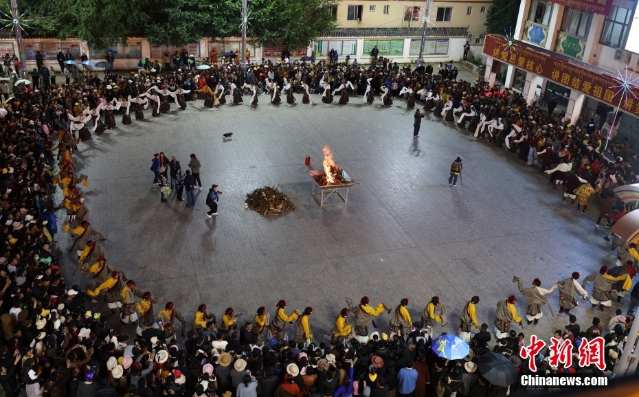 7月15日,西藏自治區昌都市貢覺縣阿旺綿羊文化商貿旅游節在當地舉行。當地民眾在開幕式前夜點起篝火,載歌載舞歡迎各地游客。