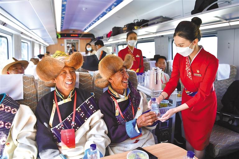 “這兩年,我們與自治區政府部門及區教育廳建立聯動機制,動態掌握當地群眾出行需求和學生放假安排,爭取運力政策,有針對性地制定運輸方案,先后增開多趟林芝—日喀則、林芝—拉薩方向的學生專列、旅游專列、務工專列。”拉林鐵路林芝站站長朱連祥介紹,靈活多樣的出行專列,不僅便利了各地群眾,對于促進藏東南地區間的經濟發展、文化交流也具有重大意義,廣大民眾共享著鐵路事業發展的成果。