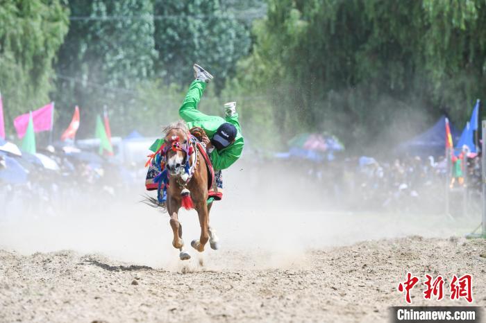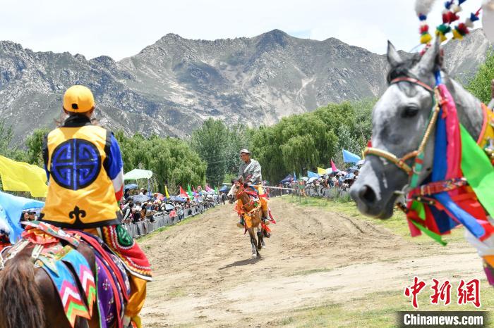 7月24日,在西藏自治區拉薩市曲水縣曲水鎮茶巴朗村村民身著節日盛裝進行賽馬和馬術表演歡度“望果節”。“望果節”已有1500多年的歷史,是國家級非物質文化遺產,流行于西藏拉薩、日喀則、山南等地。