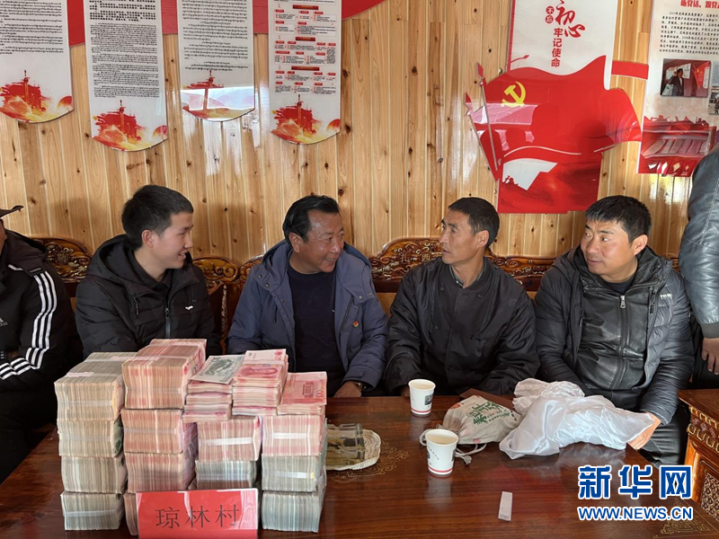 圖為紅太陽科技示范家庭農場向周邊鄉鎮村代表回購種植的靈芝并支付現金。(紅太陽科技示范家庭農場供圖)
