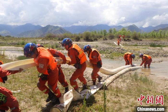 圖為進行排澇演練。西藏自治區森林消防總隊拉薩市大隊 供圖