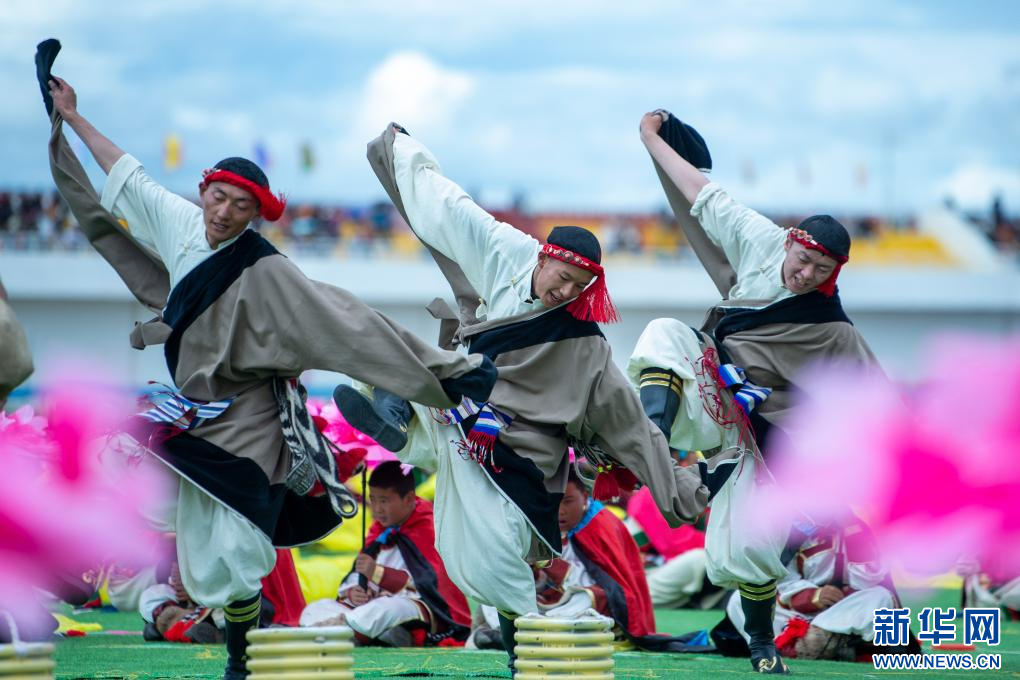 8月10日,演員在開(kāi)幕式上表演舞蹈。新華網(wǎng) 旦增努布 攝