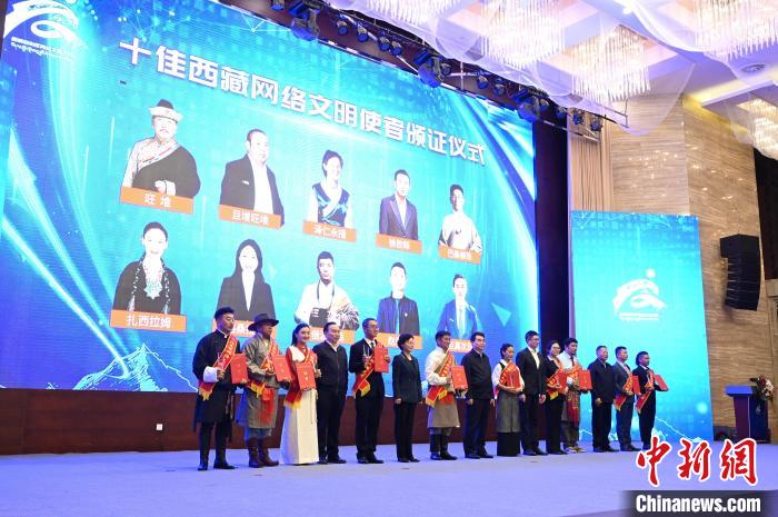 圖為活動表彰了“十佳西藏網絡文明使者”。趙朗攝