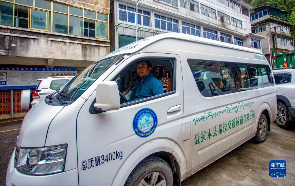 駕駛員旦增尼瑪運營的旅游車負責接送中國游客往返樟木口岸與聶拉木縣城(9月9日攝)。樟木口岸恢復客運功能后,他每天都要在這條線路上跑4、5個來回。新華社記者 姜帆 攝