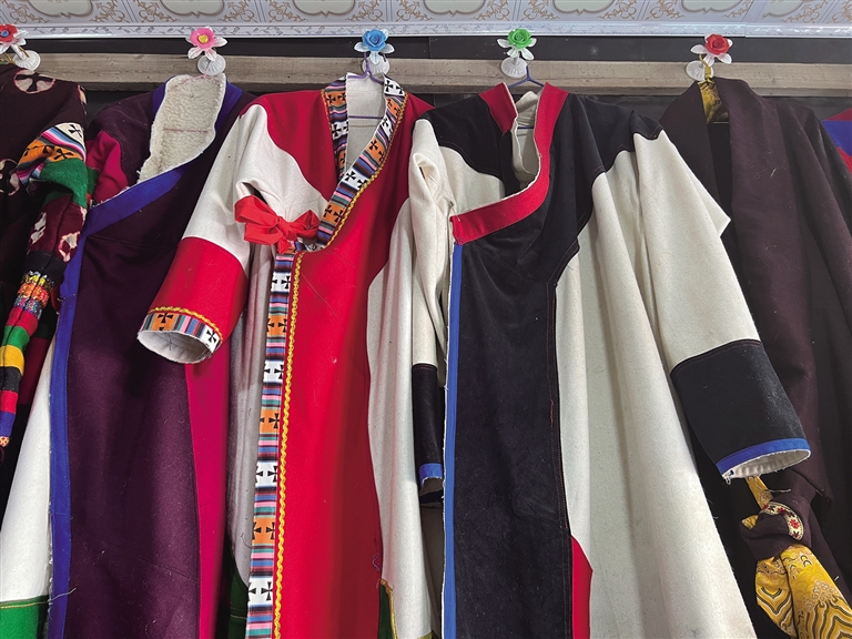 努拉今年66歲,自他曾祖父起,家人就開始從事“森郭服飾”制作,并將這項非遺技藝一代一代傳承了下來。努拉告訴記者:“從父親那一輩開始,由于外來服飾的流入,藏民族傳統服飾的發展就不如從前了,這對‘森郭服飾’的傳承也有很大的影響。”