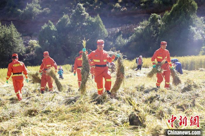經(jīng)過三天的收割,至9月18日,左貢縣森林消防員為農(nóng)牧民收割青稞40多畝。