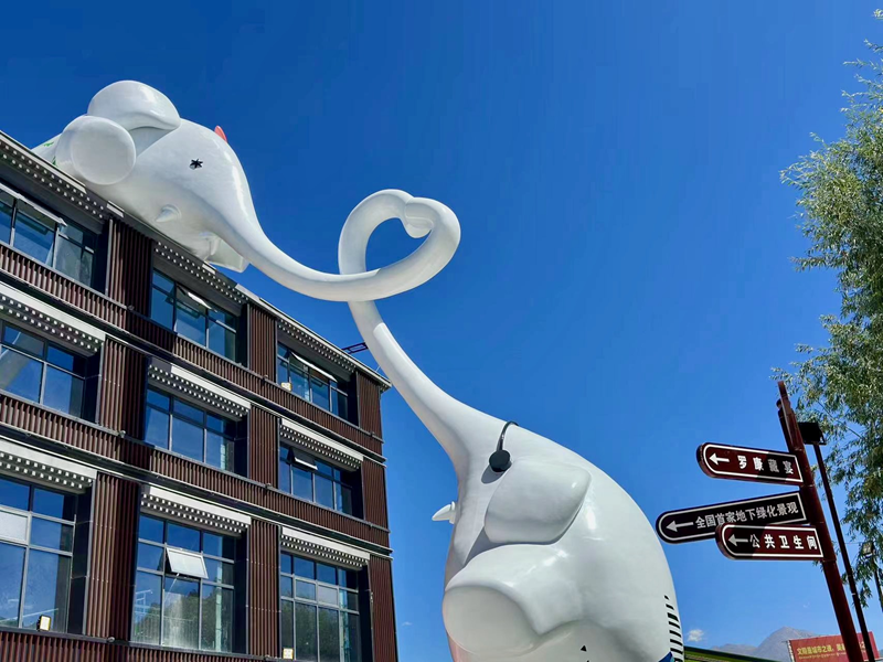 圖為拉薩印街區創意IP雕塑(9月15日攝)。 司秦菱 攝