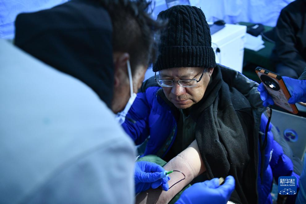 中科院院士朱彤(右)在采集血樣用于急進高原人群健康研究(10月1日攝)。新華社記者 晉美多吉 攝