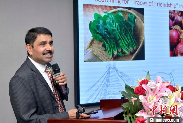 說著一口流利普通話的尼泊爾研修班學員代表、尼中文教協會秘書長蒂利普·普拉薩德·阿查利亞就“尼中關系的不同維度”發言。他從飲食、建筑、文化、歷史等多方面闡述尼中兩國友好的悠久歷史。他說:“兩國的關系具有更廣闊、更親近、更自然、更加充滿活力的特點,應該成為‘親戚’。”