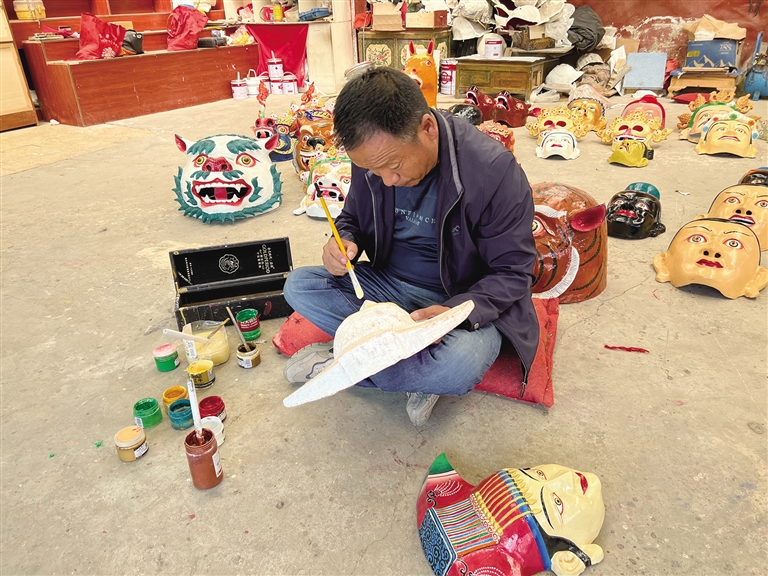 西洛出生在達孜區雪鄉扎西崗村,爺爺是泥塑工匠。因為家庭條件不好,學一門手藝養家糊口是父母早就為西洛鋪好的路。“年輕的時候跟著師父在八廓街附近學藝,學到第6年,我才開始獨立做布塑面具。那時候我發現,自己已經完全愛上了這門手藝,如今也做了30多年了。”西洛告訴記者,出師后,他就自己開店,“小店最初門可羅雀,幸而國家重視民族傳統手工藝的傳承和發展,店里生意慢慢好起來,訂單常常多到做不完。”