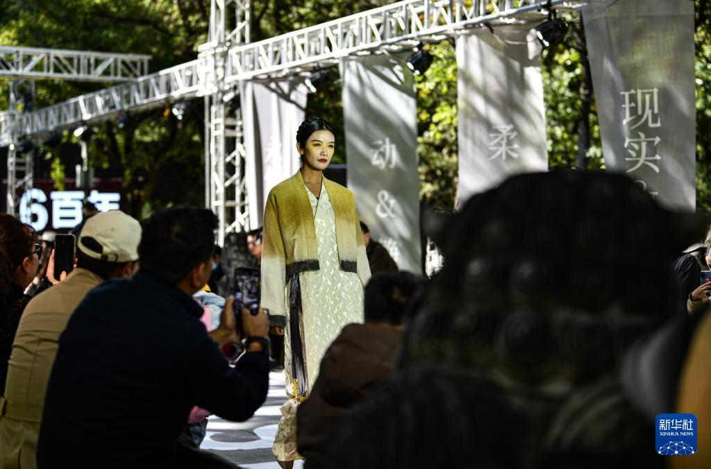 10月21日,模特在時裝發布會上展示創新藏裝。新華社記者 晉美多吉 攝