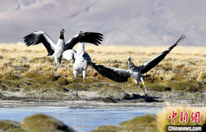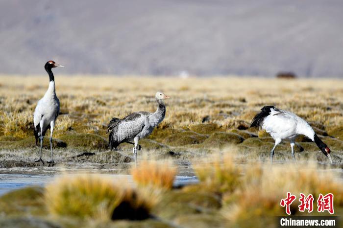 黑頸鶴是全球十五種鶴類中,唯一在高原地區繁殖和越冬的鶴類,屬中國國家一級保護野生動物。近日,中新社記者走進西藏那曲申扎縣這一黑頸鶴的重要繁殖地,了解“高原精靈”黑頸鶴的越冬遷徙。