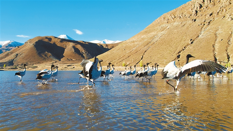 近年來,西藏不斷加大黑頸鶴生存環(huán)境保護(hù)力度,黑頸鶴數(shù)量呈現(xiàn)逐年遞增的良好態(tài)勢(shì)。10月21日,記者從林周縣了解到,黑頸鶴“先遣隊(duì)”已抵達(dá)林周縣,開啟越冬模式。首批到達(dá)林周的黑頸鶴共有58只,主要棲息在虎頭山水庫和卡孜水庫。