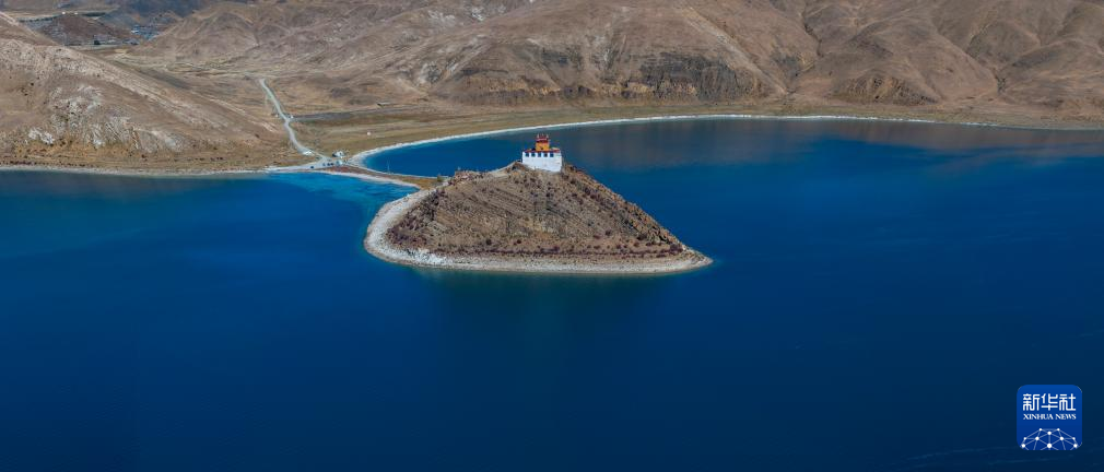 這是10月25日拍攝的羊卓雍錯(cuò)和日托寺(無(wú)人機(jī)照片)。新華社記者 姜帆 攝
