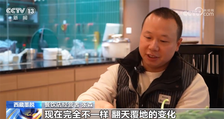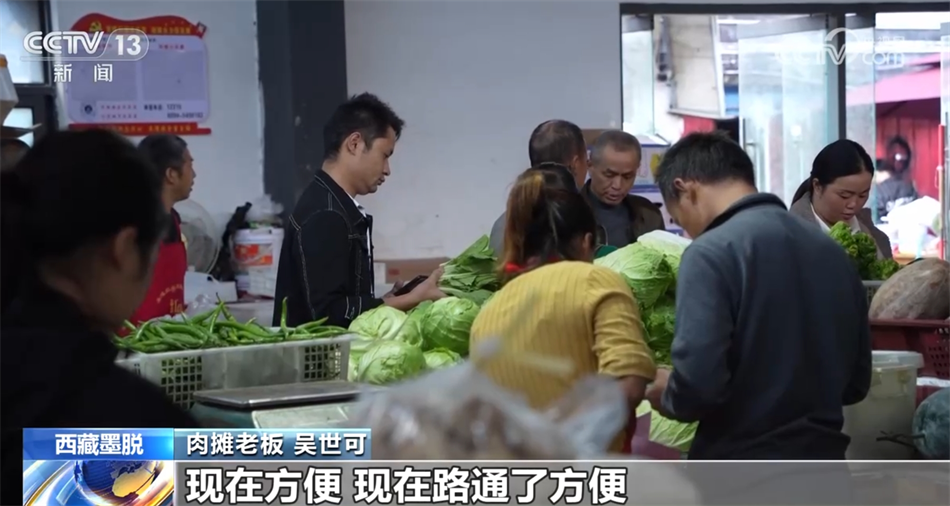 餐飲店經營者 張森:剛開店的時候,食材每天都要從波密自己開車去拉。早上六點鐘從墨脫縣就出發,來回要晚上十點鐘才能到墨脫。吃一次魚是很難很難的,路太難走了,車也走得慢,魚拉過來都會死掉,時間太長了。現在不用去波密買菜,都在我們這邊菜市場采購就行了,買一個多小時買完了。現在完全不一樣,翻天覆地的變化,路也好了,生活物資也跟得上,水果那些也很豐富。