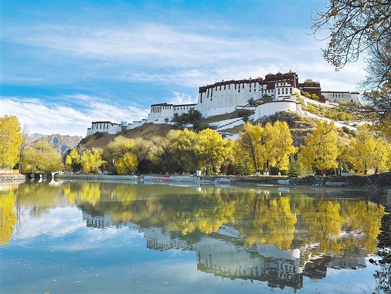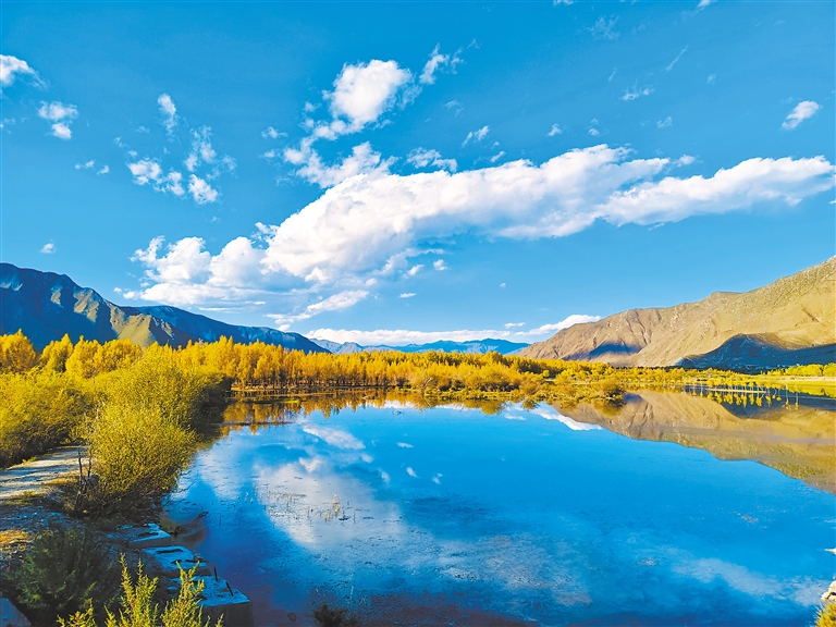 藍(lán)天、白云、湖泊、草原、樹(shù)林,拉薩深秋的色彩最為豐富,風(fēng)光最為寧?kù)o、澄澈、壯美。