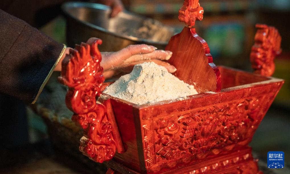 工布新年的年三十,拉巴卓瑪在準(zhǔn)備寓意五谷豐登的“切瑪”(11月13日攝)。新華社記者 丁增尼達(dá) 攝