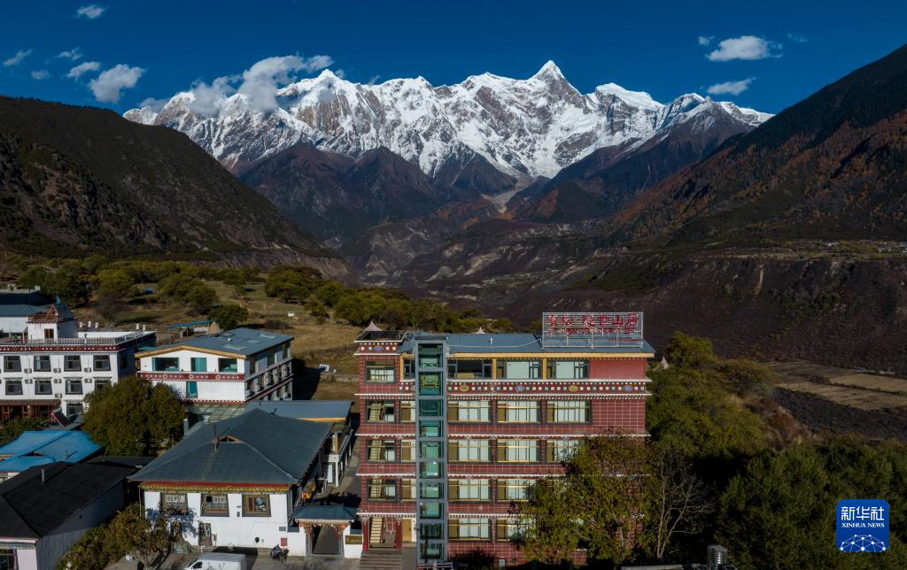 這是次仁頓珠和拉巴卓瑪開辦的民宿(無人機(jī)照片,11月13日攝)。新華社記者 姜帆 攝