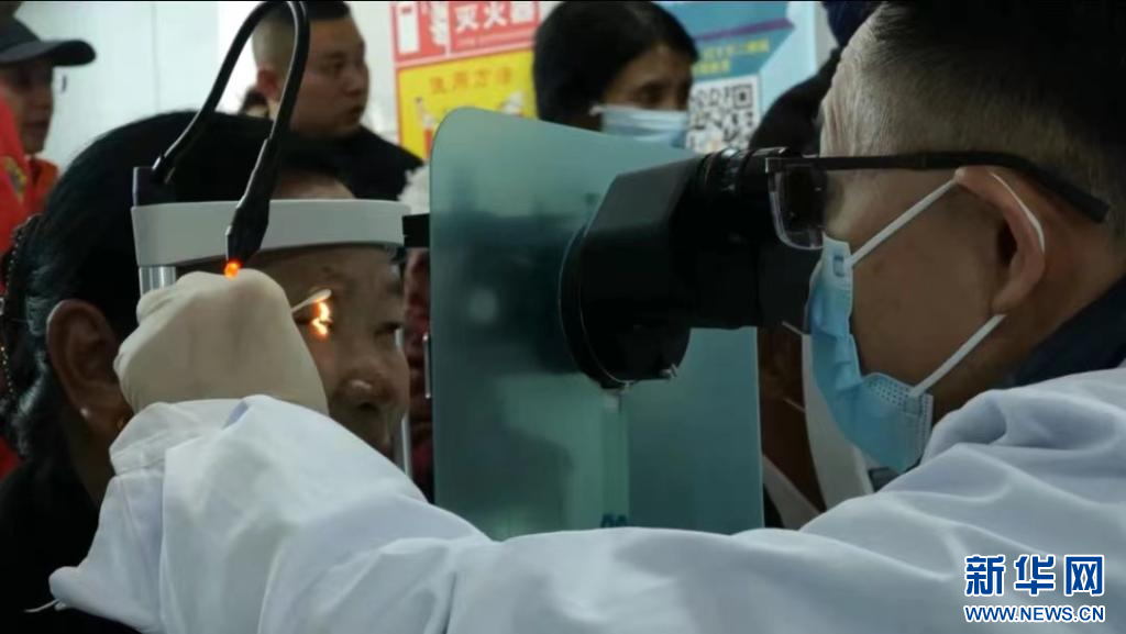 廣州市第一人民醫院與深圳獅子會眼科醫生為波密群眾進行白內障篩查(10月31日攝)。新華社發(王梓鳴 攝)