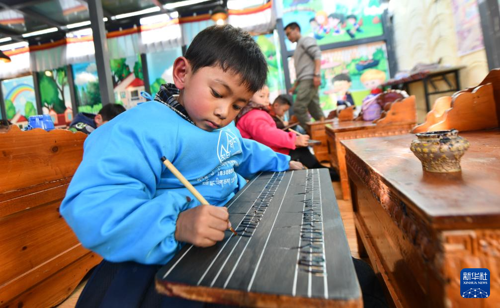 在拉薩的一家藏文書法興趣班里,學生使用“墻星”練習藏文書法(12月2日攝)。新華社記者 春拉 攝