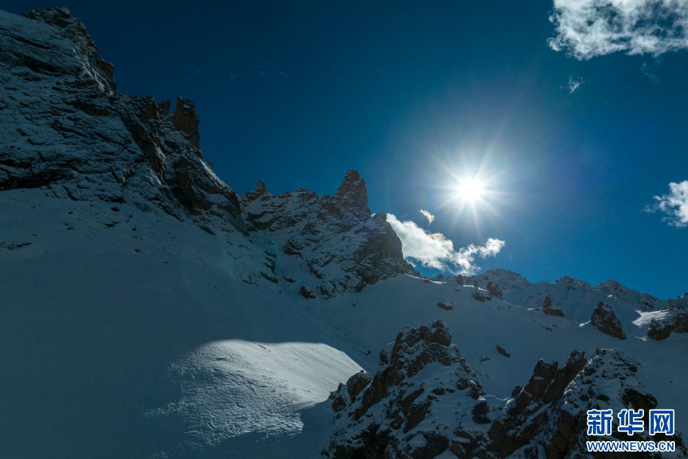 12月10日,從嘉乃玉錯湖邊拍攝的雪山(無人機照片)。新華網 旦增努布 攝